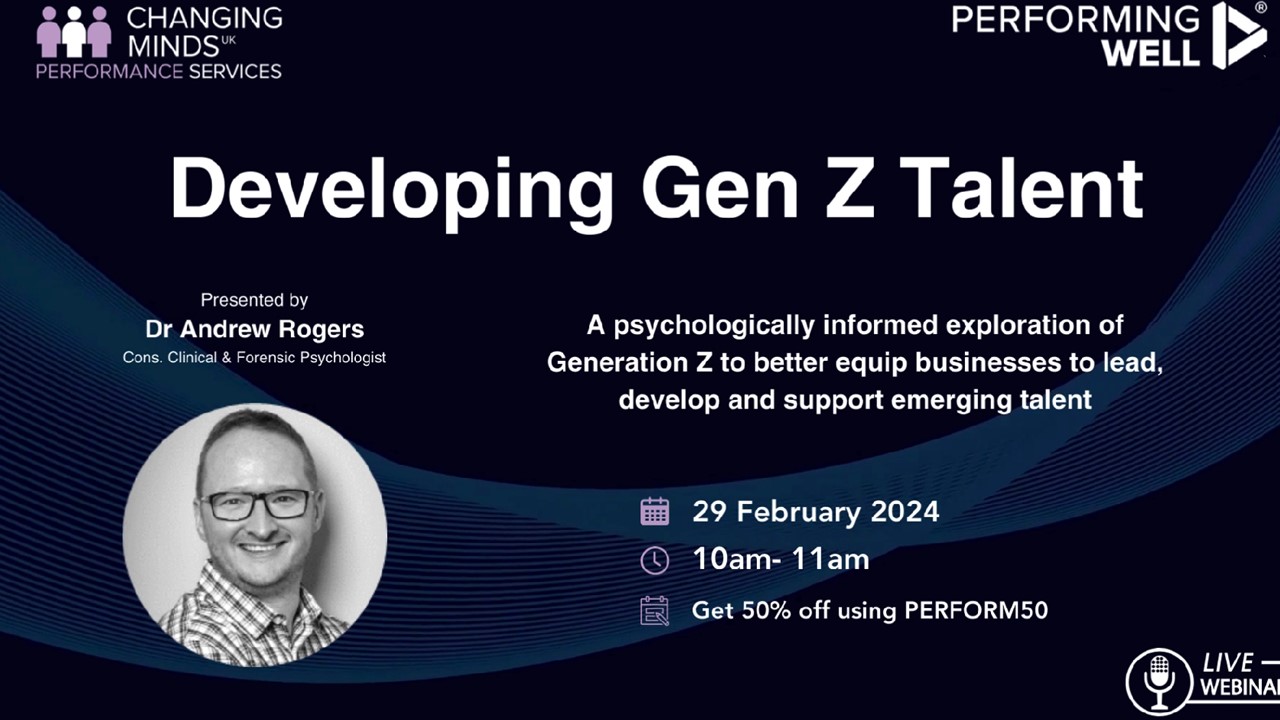 Drawing on over 25 years’ experience promoting psychological performance across business, elite sport, NHS and the criminal justice system, this webinar will explore psychologically-informed insights and understanding, to support the development of Gen Z talent: